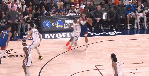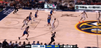 5月10日讯 NBA季后赛G3,掘金上半场以51-56落后雷霆。